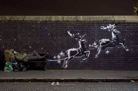 He made a new street artwork to denounce* (*dénoncer) the situation of homeless*(*sans-abri) people in England while* (*pendant que) people are about to* (*sur le point de) celebrate CHRISTMAS.