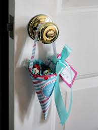 They usually leave them on the doorstep or hang them to their family or friends' doorknobs.
